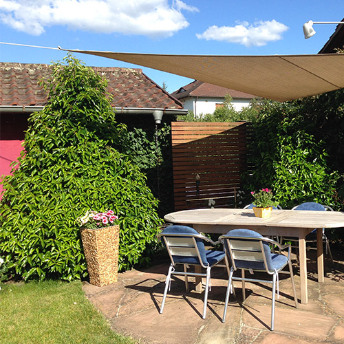 Garten und Gartenmöbel laden zum Verweilen ein.